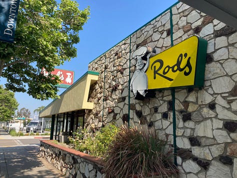 Rod’s Grill, a chain of diners founded by Rod Wellman in the mid 40s, closed its last surviving location in Arcadia this February. A link to Los Angeles’s midcentury heyday, it was a popular location so its demise was widely covered by the local press. Rod’s was the kind of comfortable, reliable, breakfast-all-day, no-nonsense neighborhood place that a diner should be.