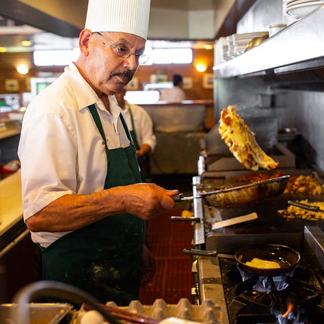 The Wellman family sold the restaurant to long-time employee Manuel de Jesus Romero who ran it for 25 years. Manny sadly passed away in 2021. I assume that’s him in the photos above. Manny updated the menu, turning it into mix of classic coffee shop fare with some contemporary inclusions like avocado toast, Impossible meat, ahi tuna, White Claw, and IPAs. Not to mention the Hispanic touches like avocado/guacamole, jalapeño, and chorizo. I love that he offered a Gringo Omelet. Wonder how many other “gringo” dishes I can find in SoCal.